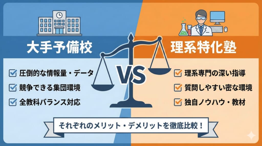 大手予備校と理系特化塾には、それぞれ異なる強みがあります。