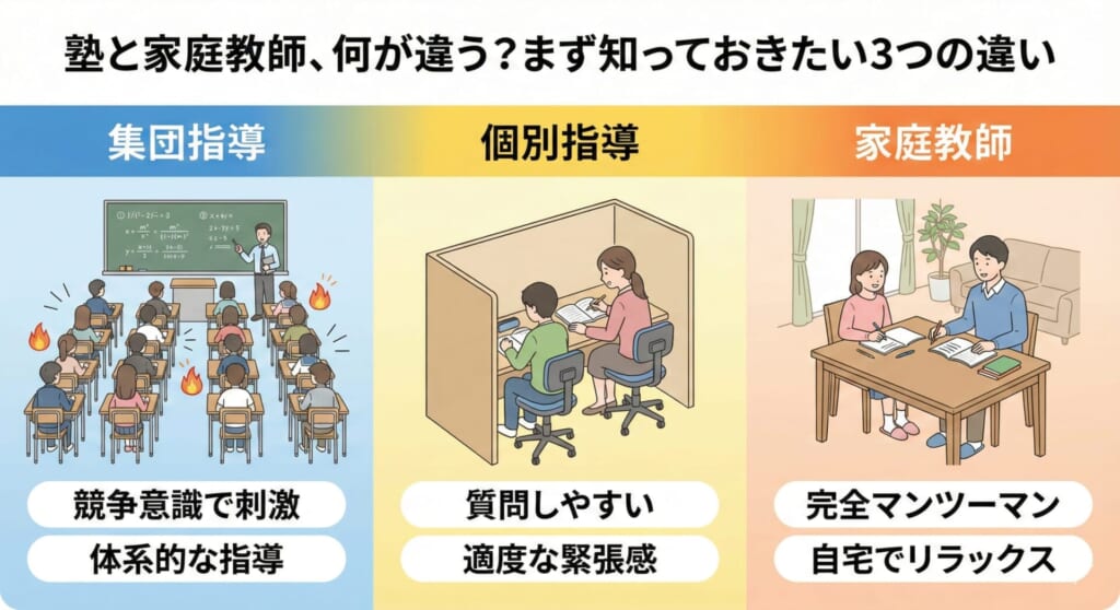 - 塾と家庭教師、何が違う?まず知っておきたい3つの違い