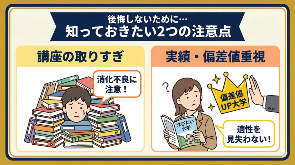 - 合格実績重視で本当に合う大学を見失うリスク