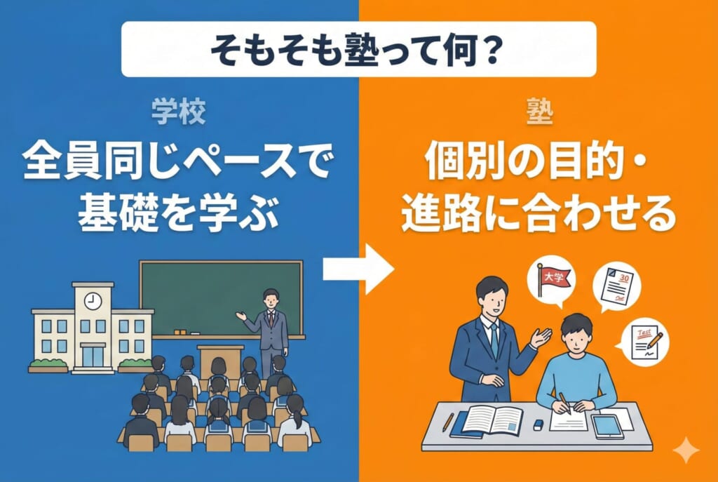 塾を検討するときは、学校の代わりではなく「目的に合わせた補助」として捉えると、選び方が整理しやすくなります。