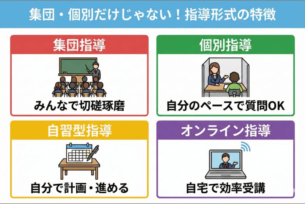 • 集団・個別・オンラインなど、指導形式の向き不向き