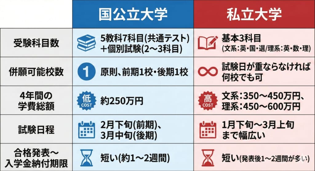 - 国公立と私立の違い(併願設計で差が出るポイント)