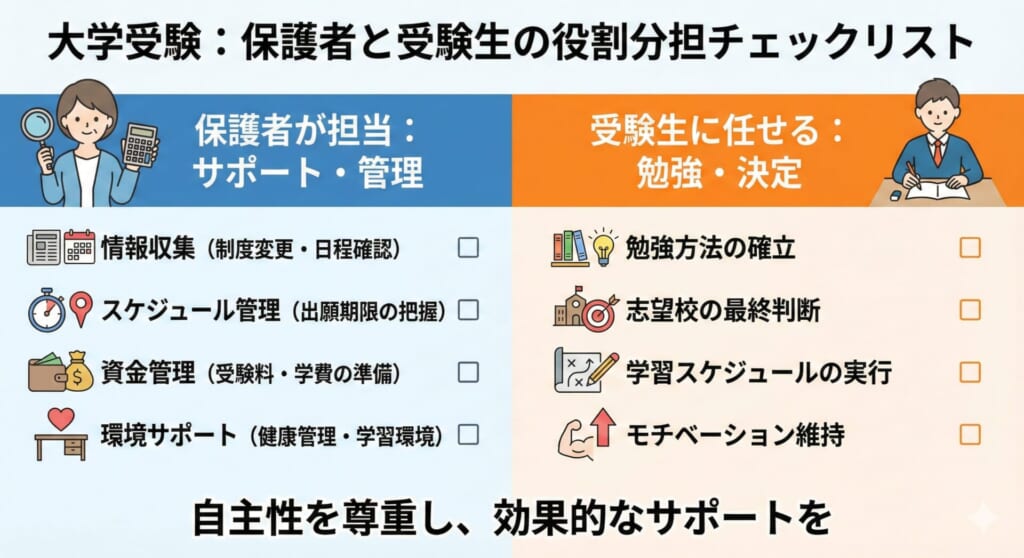 適切な距離感を保ちながら、情報収集と環境づくりに徹することで、受験生の力を最大限に引き出すことができるでしょう。