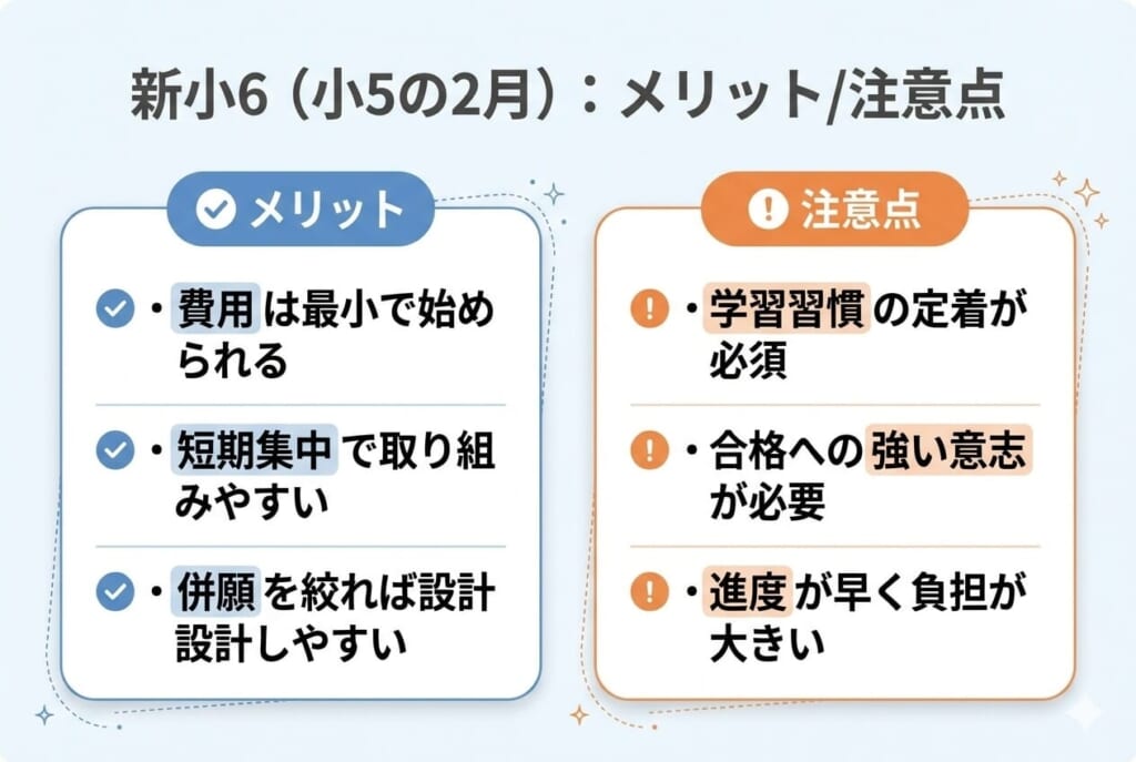 各学年からの通塾開始には、それぞれ明確なメリット・デメリットが存在します。ご家庭の状況別の判断目安は、記事末尾の「まとめ」に一覧表として整理していますので、合わせてご参照ください。