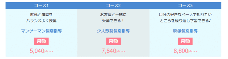 長く続けていただくため「リーズナブルな料金設定」にもこだわっています。マンツーマン指導が月額5,040円から受けられるほか、入会金や体験授業料は無料。低価格で圧倒的な成果を出せると、高い評価を得ています。