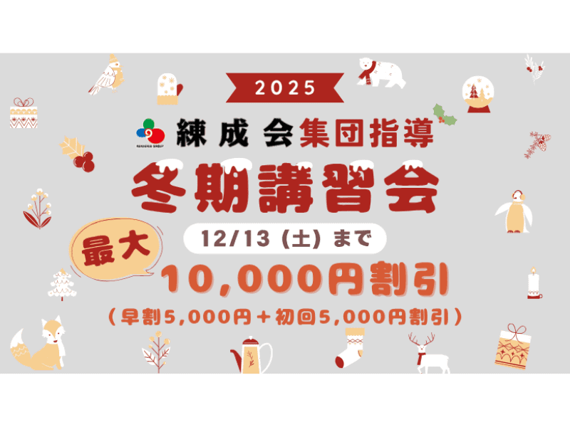 【冬期講習からの入塾がお得!12/30(火)まで入塾金&初月授業料『無料』キャンペーン実施中】この冬、成績アップを目指すなら練成会の冬期講習会で学び、さらに…