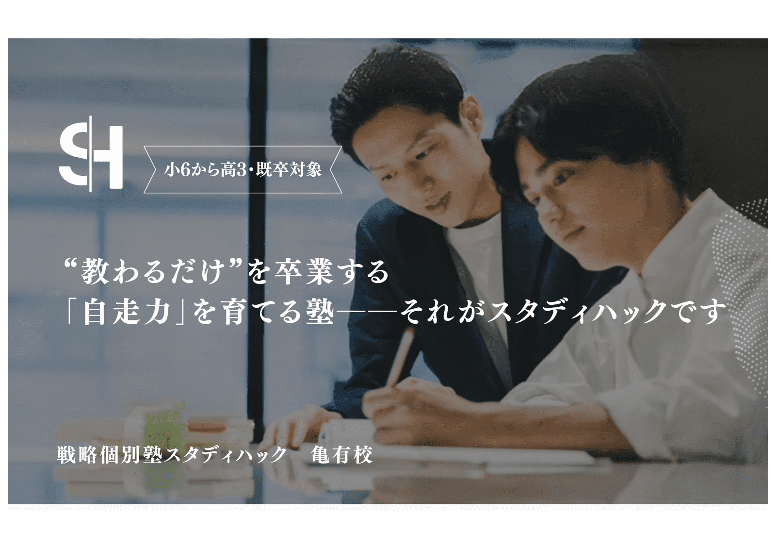 成績を上げるだけでなく、学び方そのものを変えることで、生徒の未来を大きく切り開く――それが、私たちスタディハックの目指す教育です。意志の強さや特別な才能ではなく、正しい仕組みとサポートがあれば、誰もが変わることができる。そう信じて、日々の指導に取り組んでいます。