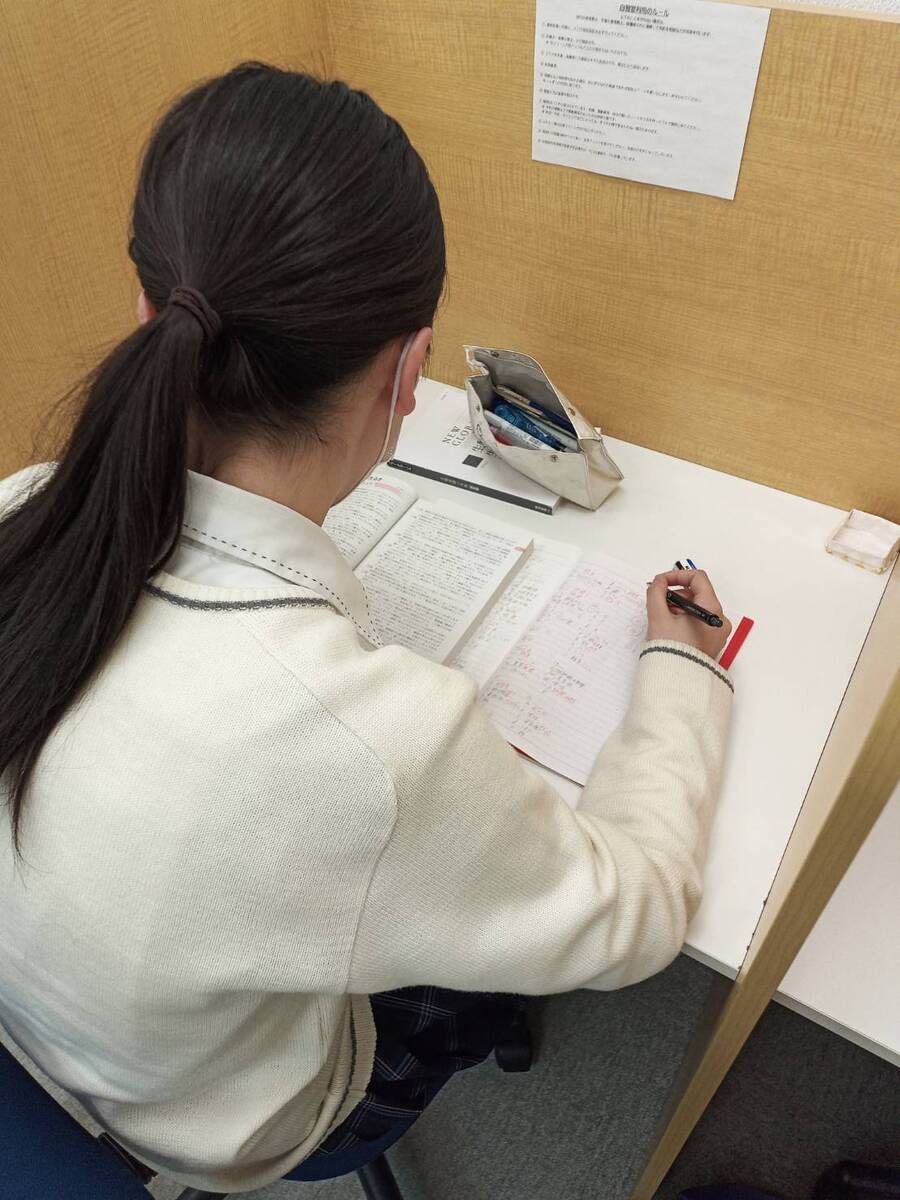 授業以外の時間の使い方が、学力を大きく左右します。創学舎パーソナルでは、在籍生が自由に利用できる自習室を完備し、集中して勉強に取り組める環境を提供しています。家庭ではなかなか勉強に集中できない生徒も、自習室を活用することで効率よく学習時間を確保できます。