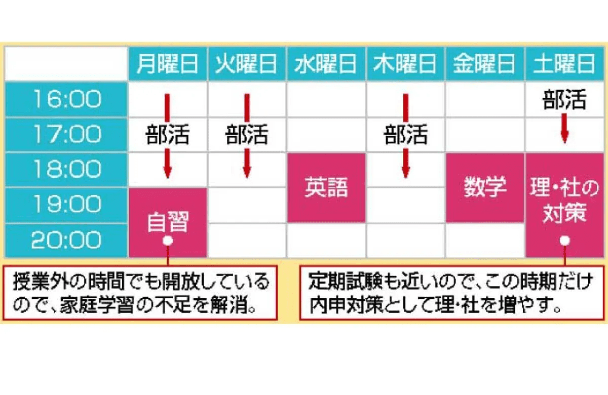 希望の教科・時間・曜日を考慮した時間割なので、部活動や習い事との両立が可能です。