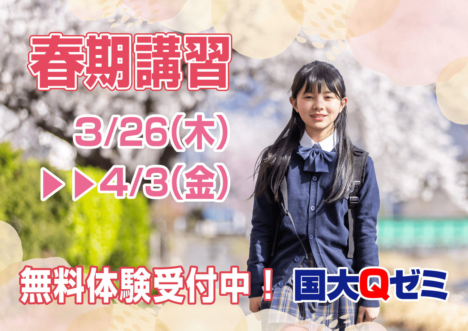春期期講習期間:3/26〜4/3