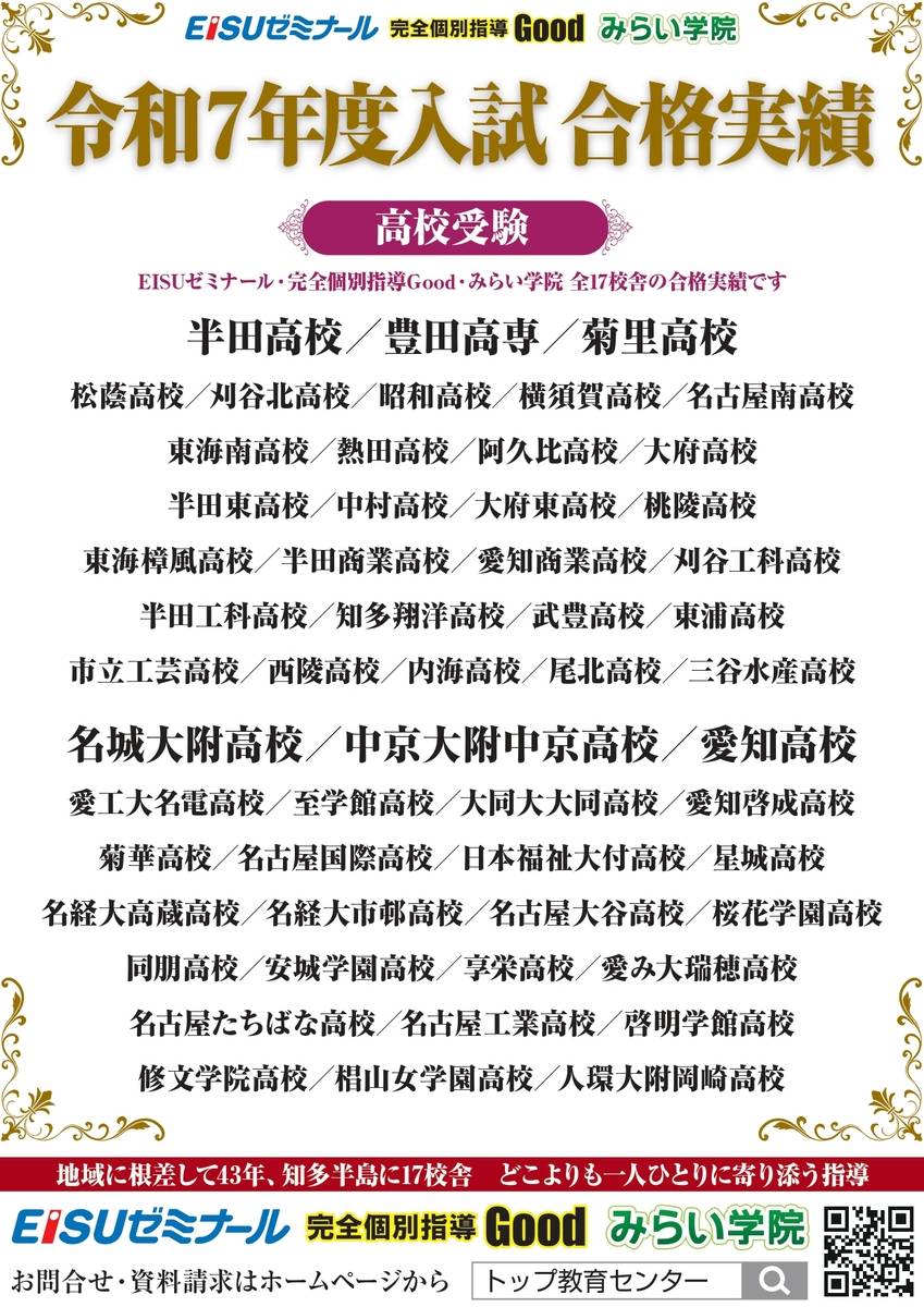 高校生大学受験では、知多半島の公立高校に準拠した定期テスト対策を実施。