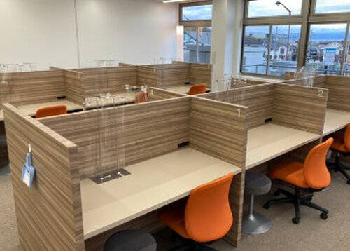 個別指導は集中して受けられるようにブースを区切っていますが、教室長が全体を見渡せるように、パーテーションの高さも配慮しています。
