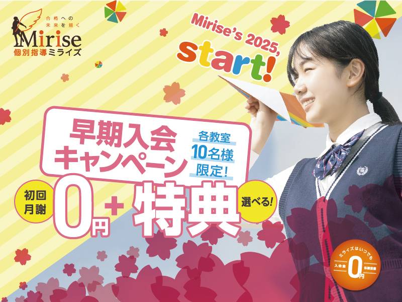 【自分のペースで学べる!ミライズの冬期講習】①オーダーメイドのカリキュラム②通常授業と変わらない、丁寧な個別指導③自由に授業の振替ができる 個別指…