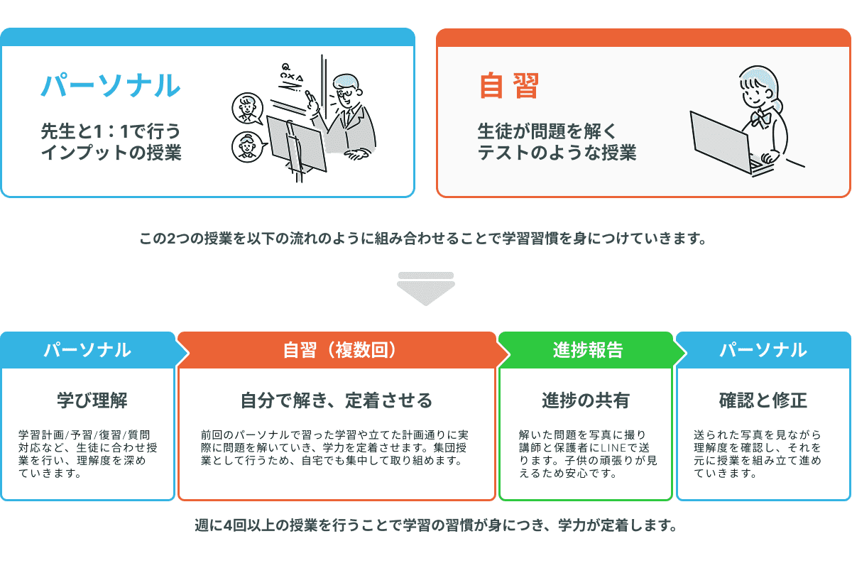 生徒の意思によらない、強制力のある「問題を解く時間」があることで、学習が自然と行われ、習慣につながっていきます。