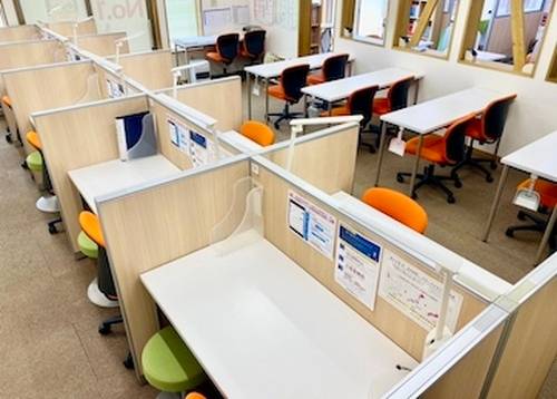 個別指導は集中して受けられるようにブースを区切っていますが、教室長が全体を見渡せるように、パーテーションの高さも配慮しています。