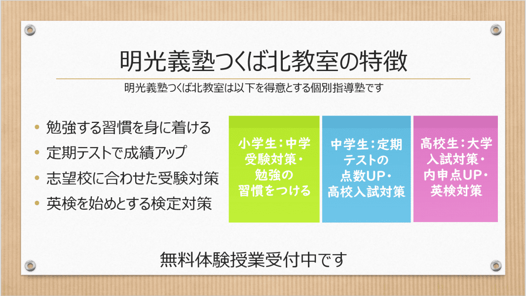 個別指導の明光義塾 つくば北教室おすすめポイント