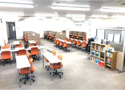 一方で、演習に取り組む際は競い合う雰囲気も大切なのでオープンスペースも用意しています。