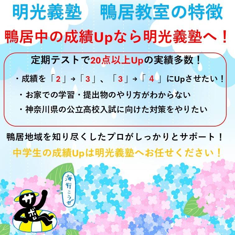 中学1年生中1の学習内容はすべての基礎中学1年生で学ぶ内容はすべての学習の土台となります。毎回の定期テストに向けて学習を進め、着実に理解を積み重ねていくこと…