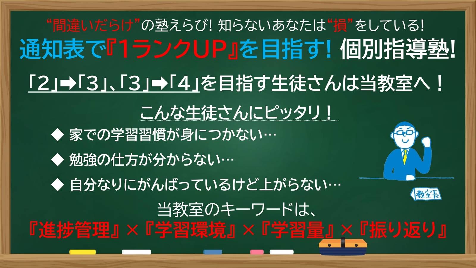自分から勉強する子になる!だから成績がアップする!中学生になっても困らない学力を身につけるきめ細かい指導が受けられます。勉強しやすい環境があります!【日時が…