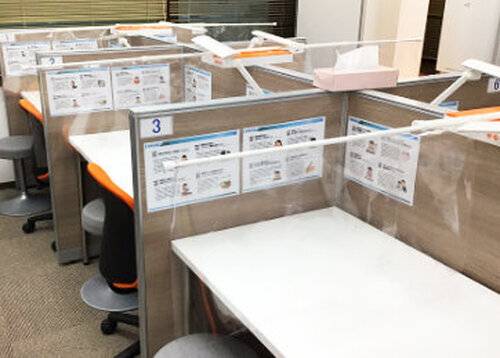 個別指導は集中して受けられるようにブースを区切っていますが、教室長が全体を見渡せるように、パーテーションの高さも配慮しています。