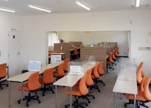 一方で、演習に取り組む際は競い合う雰囲気も大切なのでオープンスペースも用意しています。