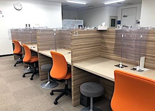 個別指導は集中して受けられるようにブースを区切っていますが、教室長が全体を見渡せるように、パーテーションの高さも配慮しています。