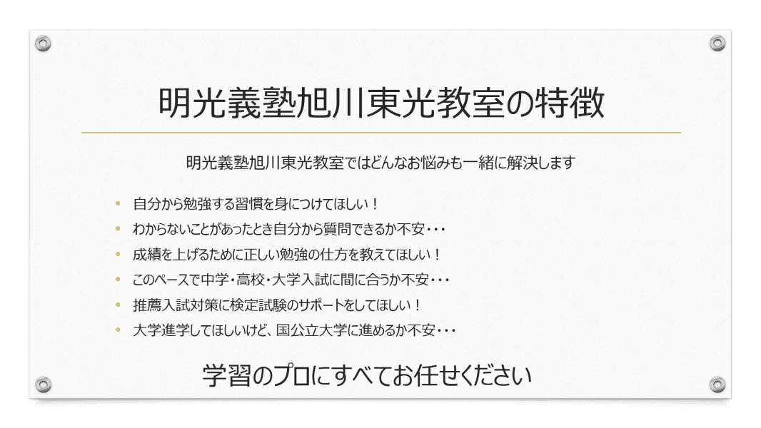 日々の勉強や受験に関する保護者、生徒の悩みは様々ですが、志望校に合格したい、将来の夢を叶えたいという気持ちは同じです。明光義塾は一人ひとりの悩みや目標に合った個別指導でサポートしていきます。