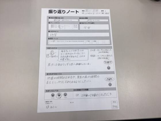 「何を学習したのか」「どこがどのように分かったのか」などについて、生徒が自分で書き込むノート。自分の言葉で記録するから、授業内容の定着はもちろん表現力も身につきます