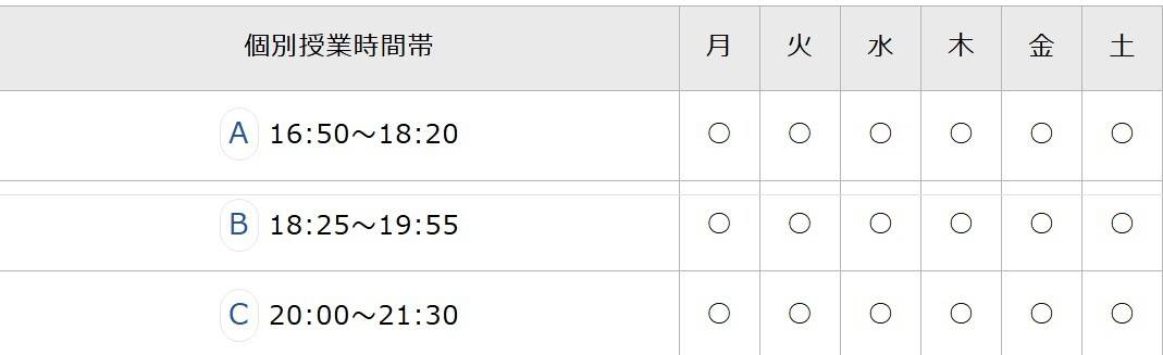 授業時間は幅広く、お子さまの生活スケジュールに合わせて柔軟に調整いたします。
