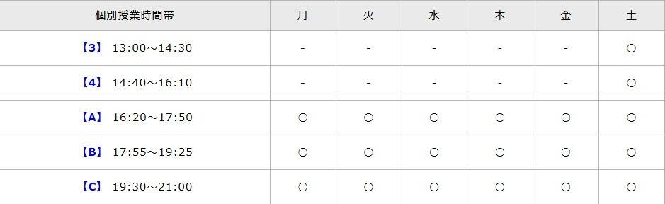 | 授業形式 | 個別指導(1対1),個別指導(1対2~),少人数制(10人以下),オンライン指導 |