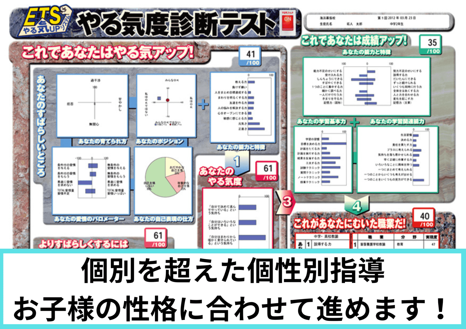 スクールIEでは、独自の個性診断テスト(ETS)と学力診断テスト(PCS)を実施しています。