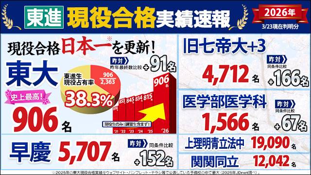 東進ハイスクールは、難関大学の現役合格実績において圧倒的な強さを誇ります。