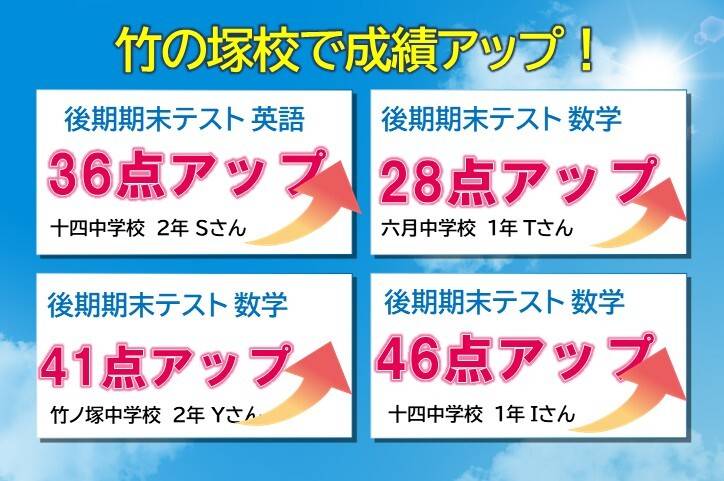 学校ごとの定期試験対策にも力を入れ、内申点をしっかり取った上でお子さまの進路の選択肢を広げます。