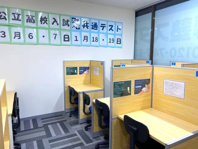 中高一貫校生に対応、授業の振替可能、不登校生に対応、学習にPC・タブレットを利用、オンライン対応、1科目から受講可能、季節講習のみの受講可、自習室あり