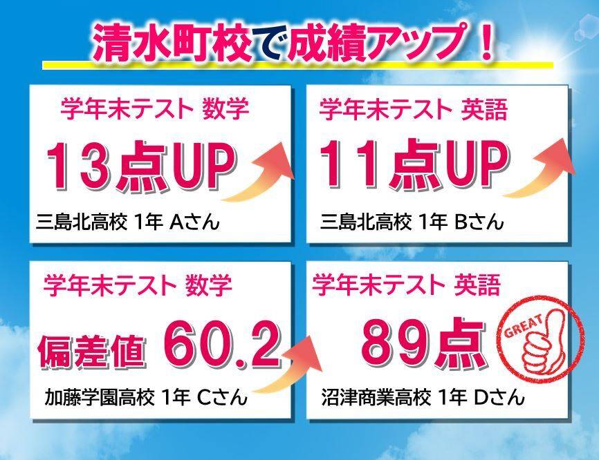 学校ごとの定期試験対策にも力を入れ、内申点をしっかり取った上でお子さまの進路の選択肢を広げます。