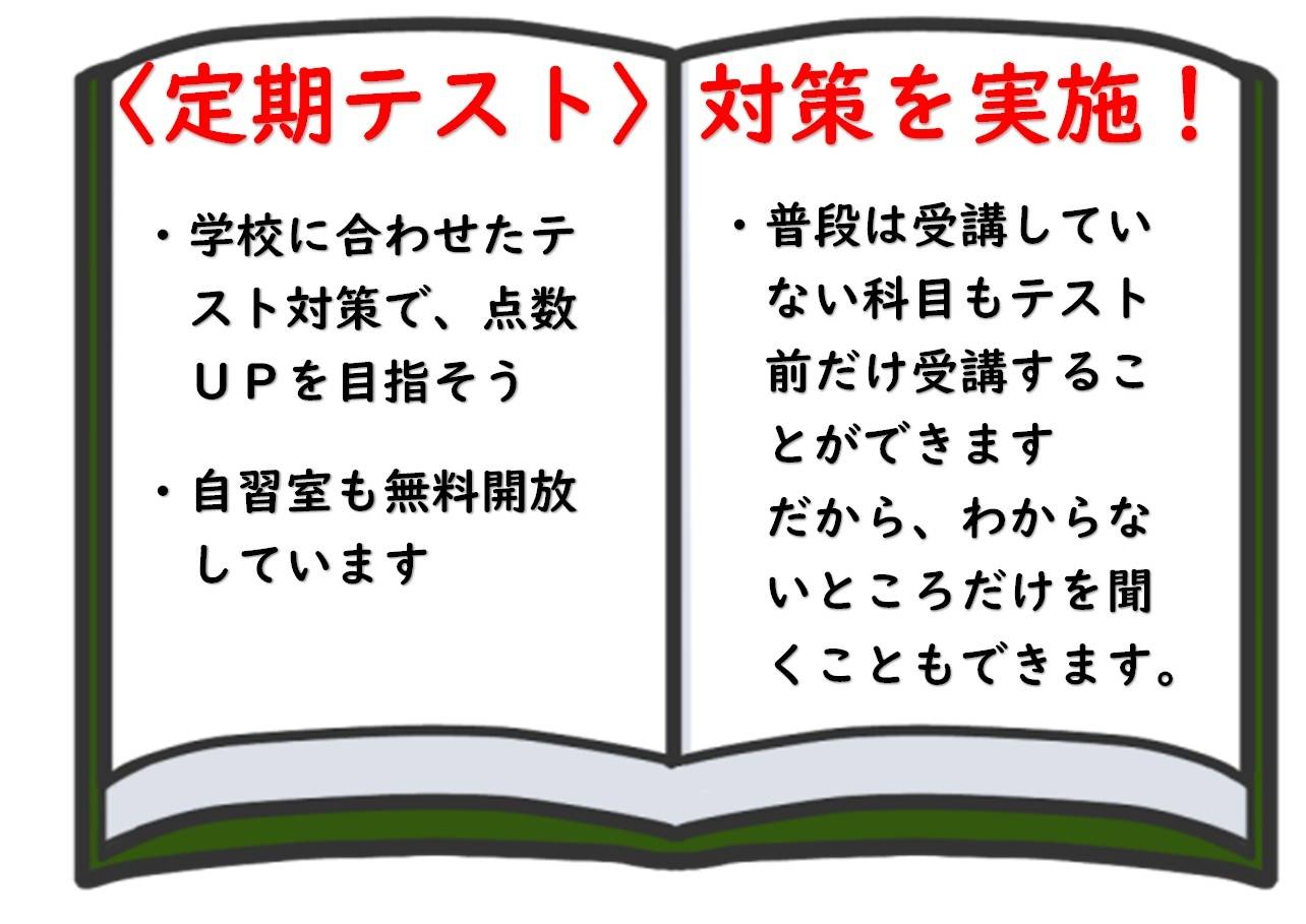 学校ごとの定期試験対策にも力を入れ、内申点をしっかり取った上でお子さまの進路の選択肢を広げます。