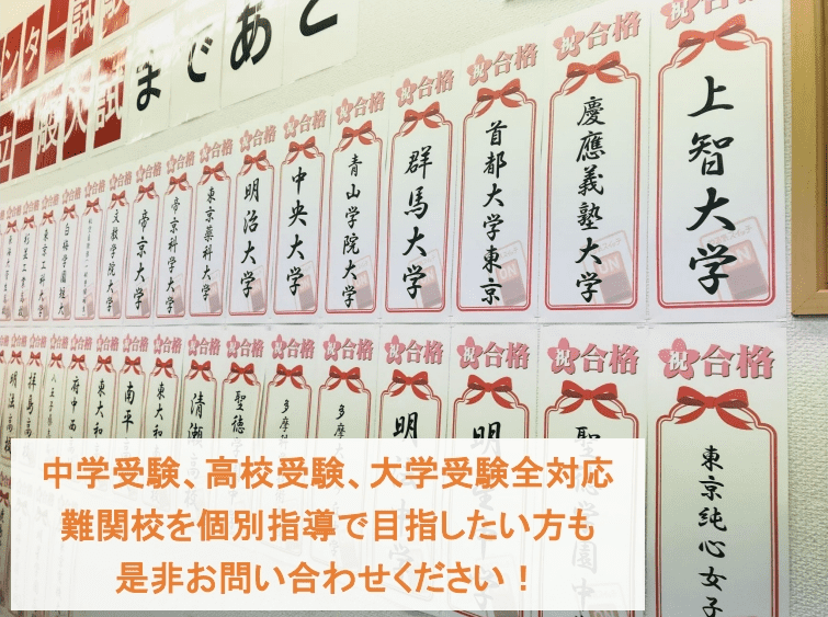 個別指導ですので、柔軟に授業のペースや科目を調整しながら、合格を目指すことができます。