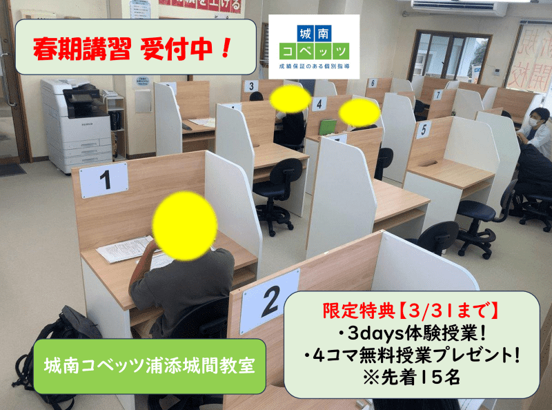 【成績アップ3days体験授業!!【先着15名】】 (~3/31まで)春期講習の前に「城南コベッツ」の指導が体験できる、3日間の体験プ…