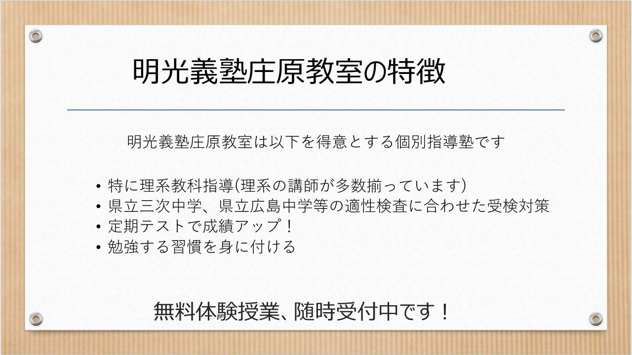 個別指導の明光義塾 庄原教室お近くの塾を探す