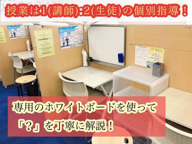 また、講師1人に生徒2人がつく指導スタイルのため、生徒は「自分専用のホワイトボード」を使って解き方を学んだ後、時間内に演習を行います。