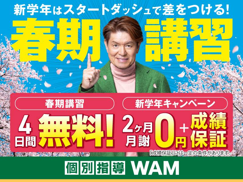 個別指導WAMで、新しい学年の準備をはじめよう!春期講習PR●新学年準備●前学年の総まとめ●苦手克服●受験対策・・・など4月は新学年のスタート!春のスタート…