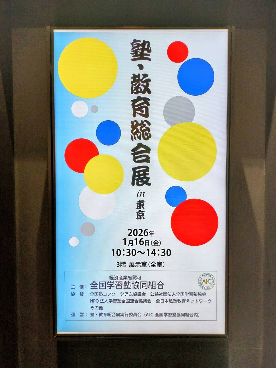 さて、先日1月16日(金)に全国学習塾協同組合主催「塾・教育総合展㏌東京」が開催され、今年もゲストとして招待されました。