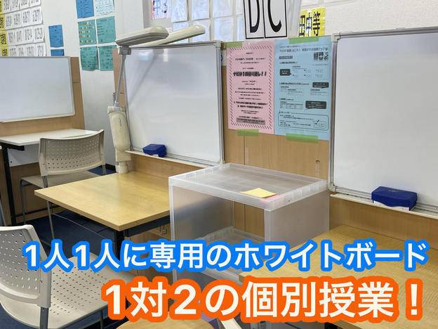また、講師1人に生徒2人がつく指導スタイルのため、生徒は「自分専用のホワイトボード」を使って解き方を学んだ後、時間内に演習を行います。