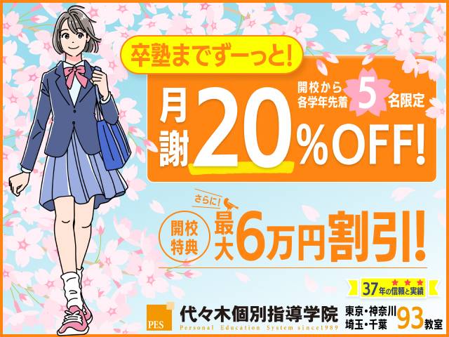 ① 特別割引 卒塾までずーっと! 月謝20%OFF