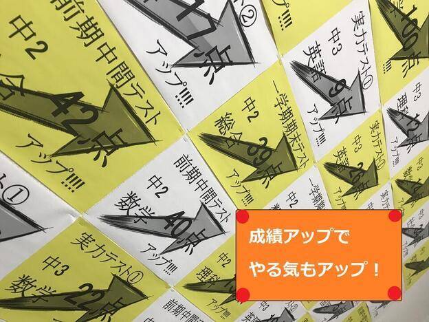学校の定期テストでの成績アップを保証する制度です。対象は中学1年生の2学期末以降に入塾される方となります。入塾前のテスト結果にプラス20点を入塾後3回以内のテストで達成することをお約束します。万一達成できなかった場合は、その後の1学期間の授業料を無料で指導します。