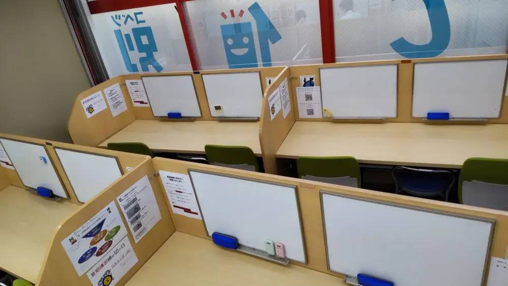 約半数の教室では毎週日曜日に自習室を開校しており、他の教室の方も追加料金なしでおつかいいただくことができます。