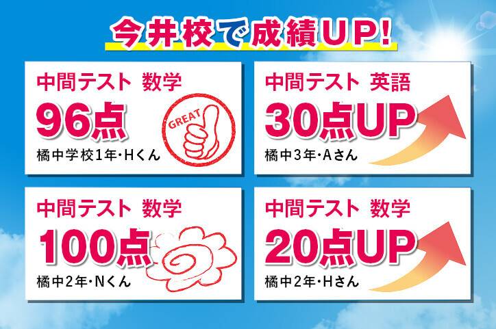 学校ごとの定期試験対策にも力を入れ、内申点をしっかり取った上でお子さまの進路の選択肢を広げます。