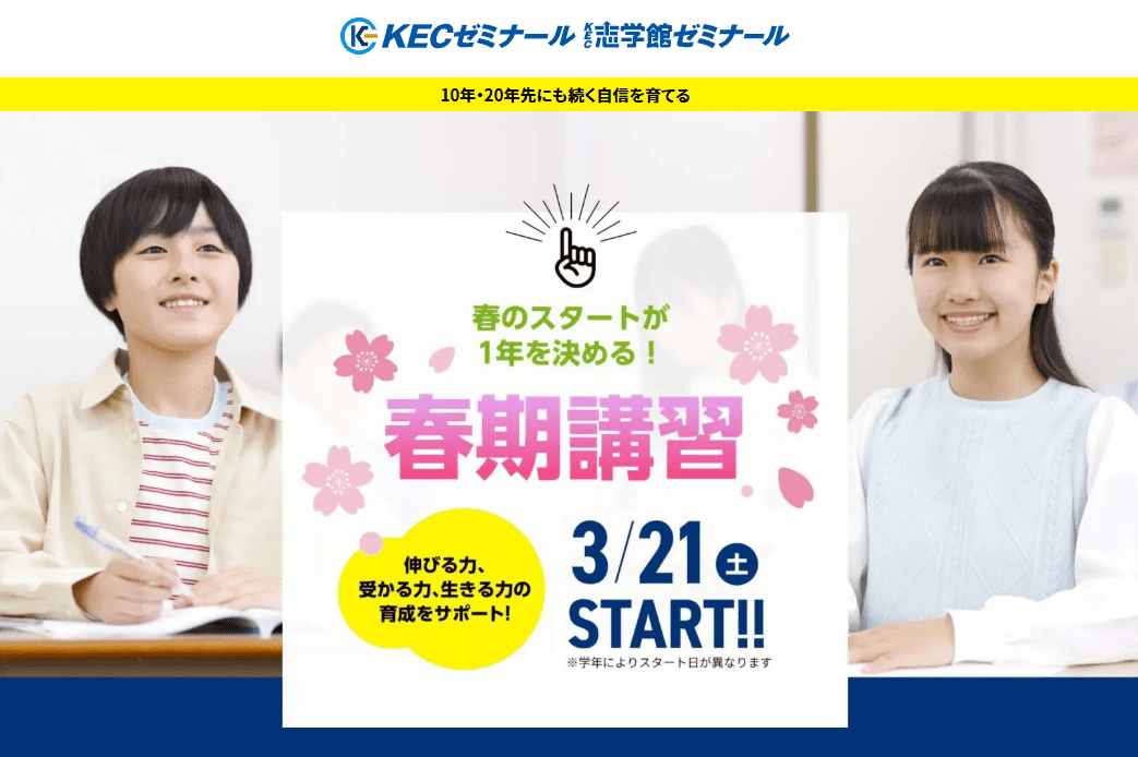 KECゼミナール・KEC志学館ゼミナールの春期講習は、次学年の先取学習をメインに実施。
