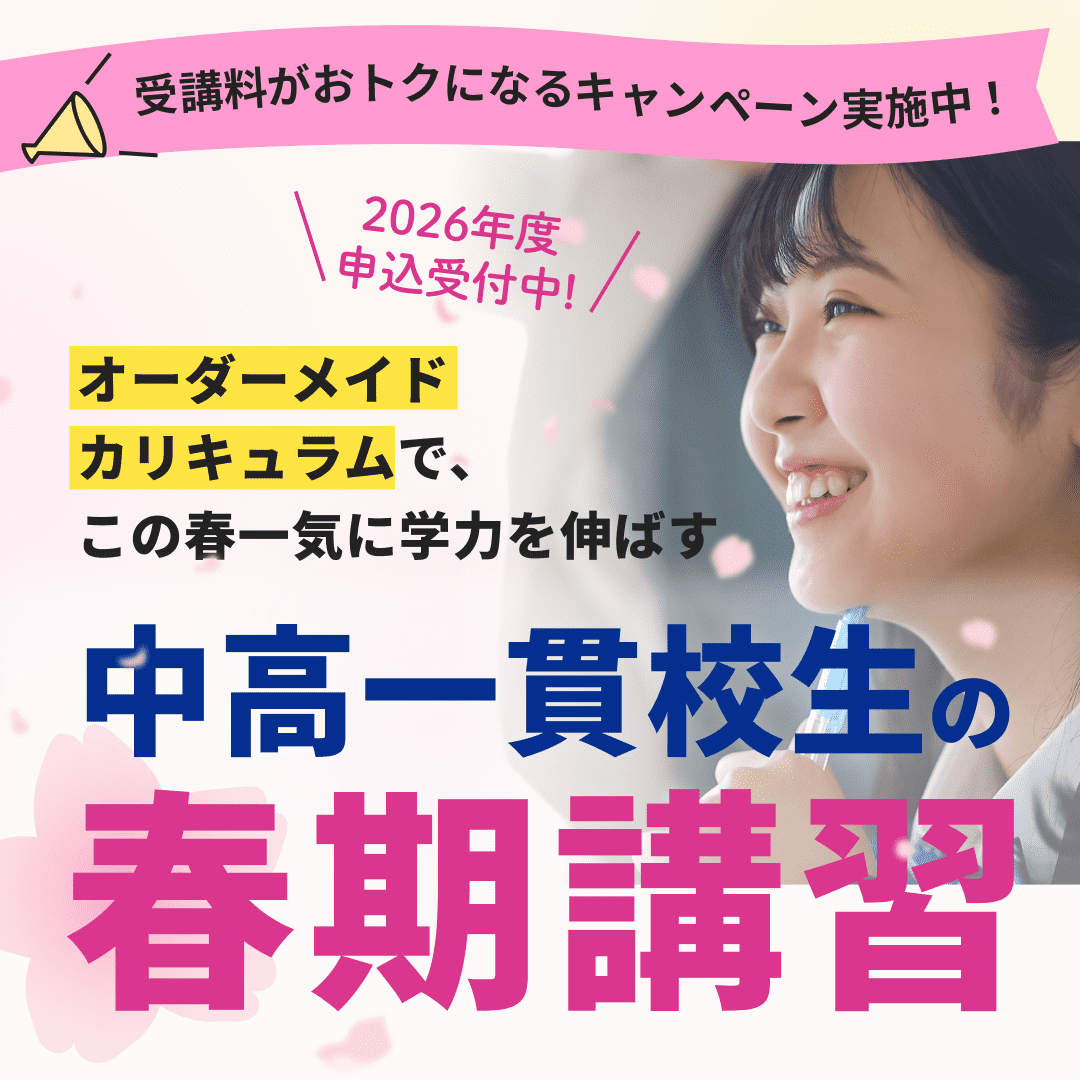 中高一貫校専門 個別指導塾WAYSの春期講習では、過去単元の総復習や休み明けテスト対策、さらには大学受験に向けた基礎固めから直前対策まで、一人ひとりの目的に合わせたカリキュラムをご用意しています。