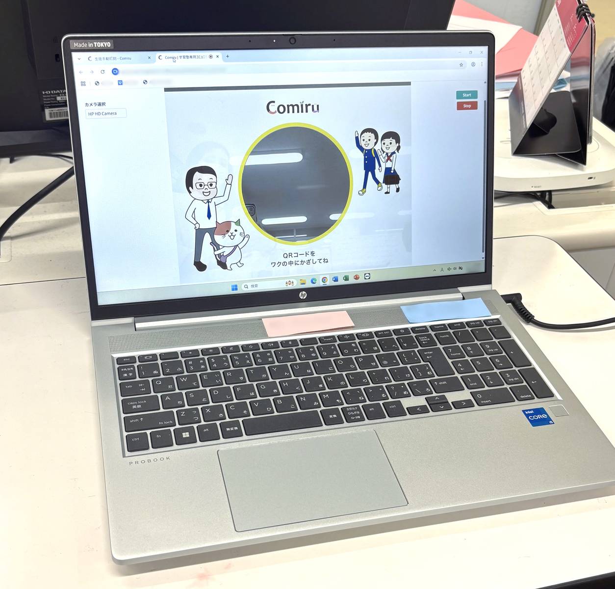 ・入室した生徒がQR付カードをQRコードリーダーにかざします。音がすれば入室完了。